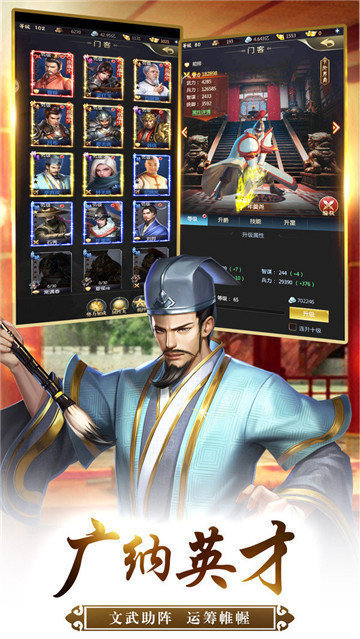 招募很多的能人异士加入你的阵营,他们会扶持你,给你出谋划策,助你一臂之力。