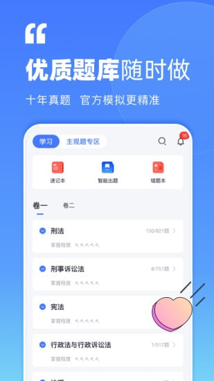 一、免费刷海量优质法考题库,搭配AI智能批改助你快速提分