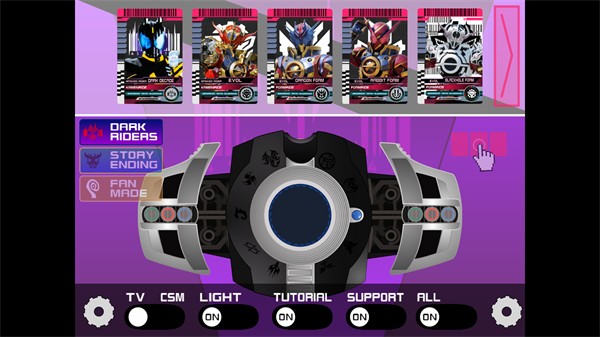 假面骑士黑暗帝骑,这是一款假面骑士题材的变身模拟游戏,假面骑士黑暗帝骑游戏根据假面骑士特摄剧改编,玩家可以使用黑暗帝骑驱动器变身成为黑暗帝骑,还可以使用帝骑卡片自由切换形态,玩家可以操控假面骑士黑暗帝骑与敌人战斗,体验假面骑士战斗的乐趣。