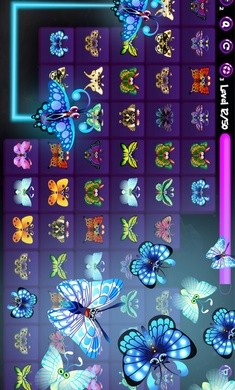 1、玩家要找到两个一模一样的蝴蝶图案并将它们连接起来,连接所经路径转弯不能过多,同时路径上不能被其他图案挡住。