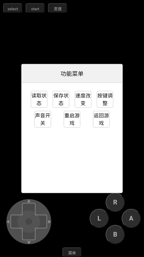 5. 在游戏界面,点击界面底部的“菜单”,即可对读取状态、保存状态、速度改变、按键等进行调整。