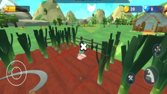 1. 拿起手中的大镰刀收割农田里的作物,把收割好的蔬菜妥善放置,之后可以拿去售卖,从而赚取金币等奖励。