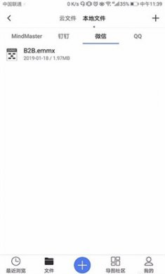 3、当通过微信、QQ、钉钉接收别人发给我的思维导图源文件后,可直接打开MindMaster ,在“本地文件”处进行查看、保存及编辑。