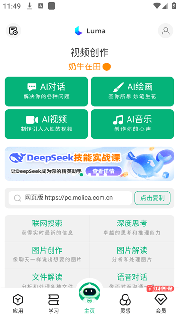 1.在【应用】页可看到各种使用的AI智能功能