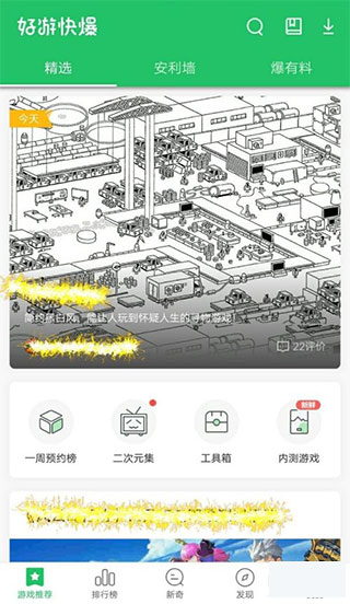 好游快爆,一个能给出个性推荐,带你回味情怀游戏的平台,在这里,点评资讯、测试快玩等资讯服务一站搞定。首页、专区等板块会为你额外推送最新、最热门的游戏内容,主要面向安卓用户。要是你在游戏里遇到过不了的副本、不知如何获取的装备,或是完不成的任务,都能在好游快爆上进行极速搜索,助力你快速通关!本站还提供好游快爆安装包哦!