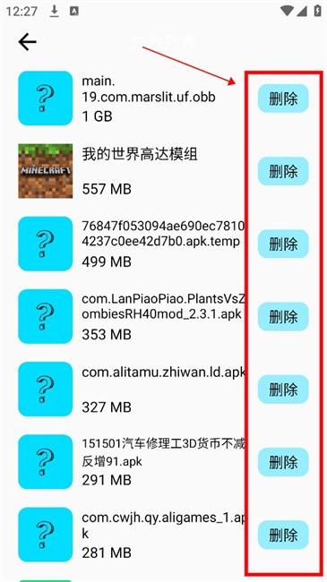 4. 选中想要清理的文件,然后点击“删除”。