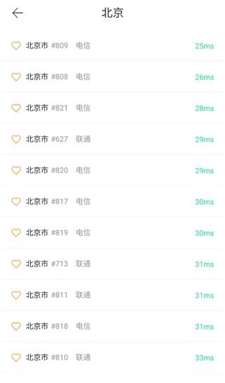 3、随后挑选一个ip,进入之后便能看到各个城市具体的线路信号情况与编号,挑选一个信号相对较好的点击就行。