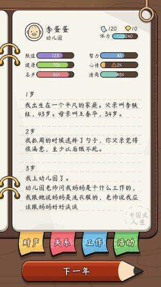 3、游戏里的人物角色,比如你的爸妈、老公老婆,孩子等等,都是活生生的人,会主动和你互动,对结果产生影响。