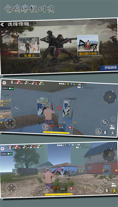 嘿,今天小编要给大伙介绍一款超好玩的枪战生存游戏,它叫吃鸡终极对决。在这款游戏里,你会和另外50名玩家一起降落到一座超大型岛屿上。玩家得在岛上四处搜寻物资、食物以及武器弹药,把碰到的敌人都打败,坚持活到最后就能赢得游戏胜利。而且哦,这游戏还支持多人联机,玩家能和自己的好朋友组队玩,一起体验极限生存带来的快乐。