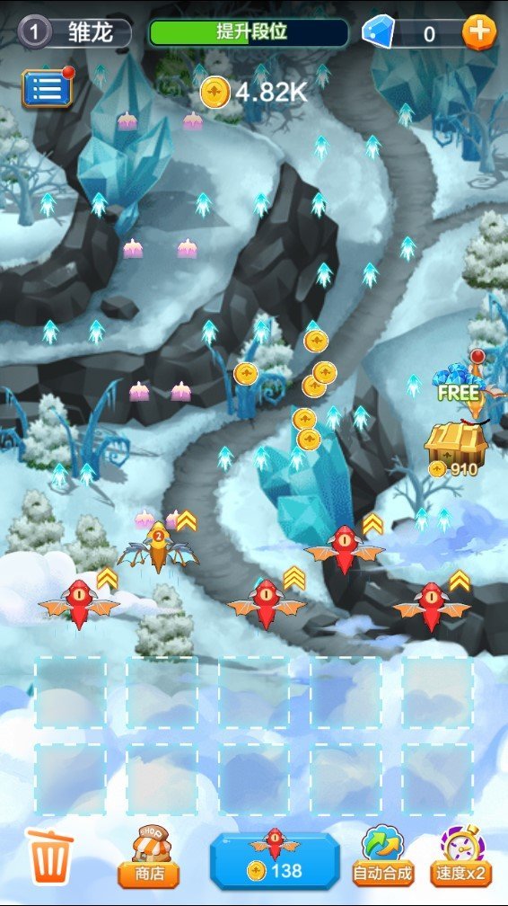 b、建立起你的恐龙战队与恶龙对抗,不断合成升级提升实力;
