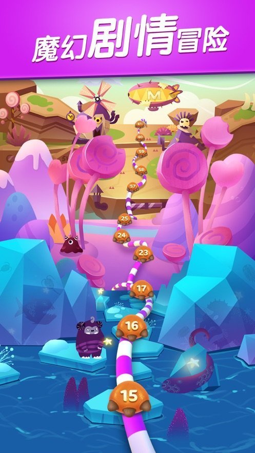 1、精心绘制的色彩搭配超丰富的酷炫场景的益智消除类游戏;