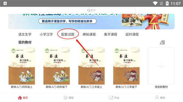 1. 登录方正书法教师端,点击“课程”,选择教材进行添加。