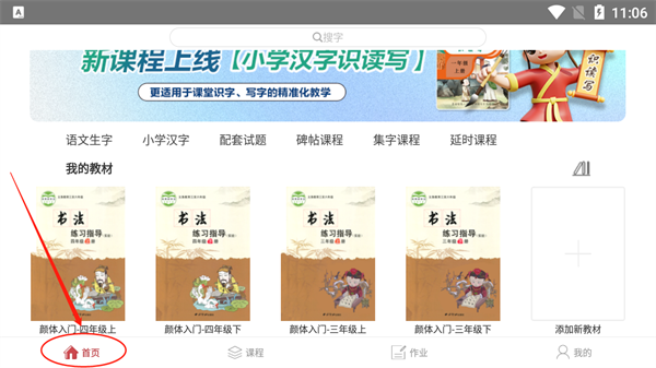 2、之后在首页就可以看到添加的教材课程。