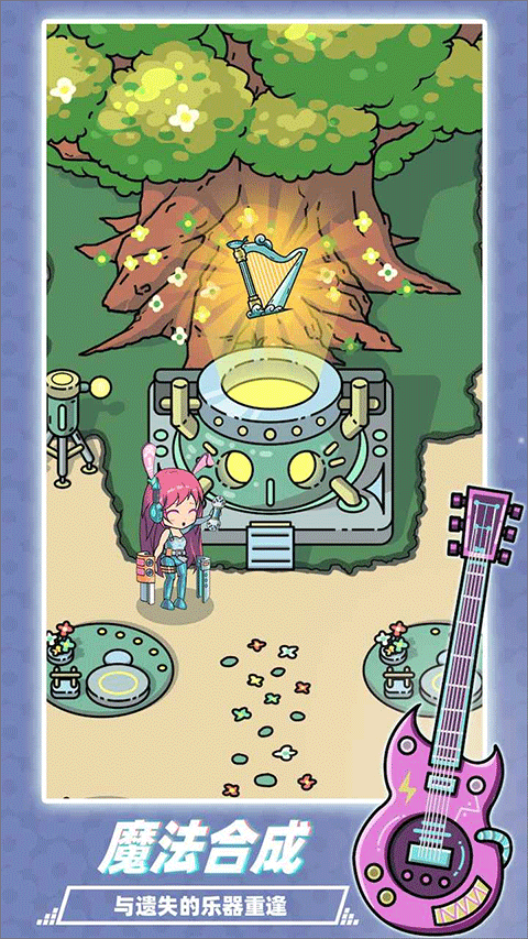 魔法合成:游戏中的独特音乐树可以让玩家寻找到古代乐伶的琵琶、知名演出家的随身乐器、甚至是异世界的绝世珍宝等古今中外的音乐宝物,这些宝物能为街道发展和音乐创作提供助力。