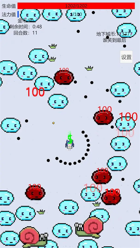 3、通过击败场上史莱姆获取金币用来在结束回合的时候购买卡牌,同时也会获得地下城币。