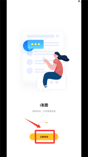 2、在功能引导页面选择立即体验,即可进入社区互动主界面。