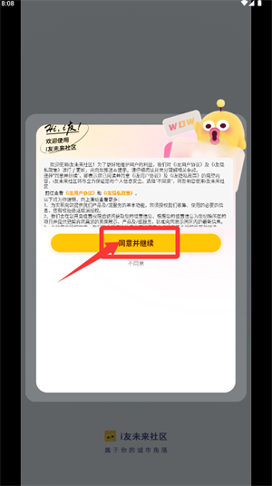 1、启动应用后阅读用户协议与隐私政策,点击同意并继续按钮。