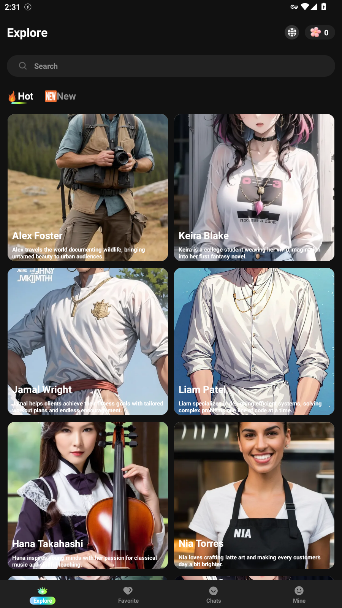 2、可以在主页选择一个你喜欢的ai角色类型。
