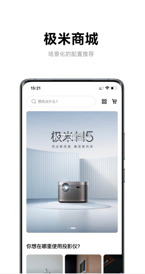 - 具备多种便捷操控功能,可通过App遥控投影设备,实现手机同屏,进行应用安装、一键截屏与文件传输。部分机型还支持蓝牙开机,让你能随心掌控极米投影设备,尽情享受大屏使用带来的全新体验。