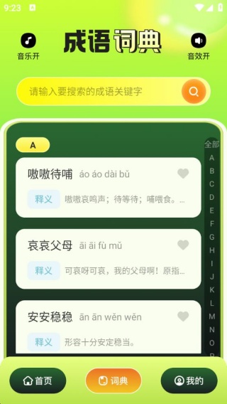3、包含丰富成语,从词典检索到游戏挑战,全面覆盖成语学习的各个方面。