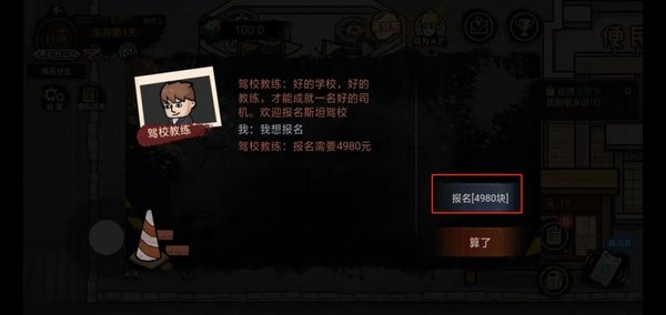 1、玩家首先需要报考驾照,然后去公园门口翻几次垃圾箱。