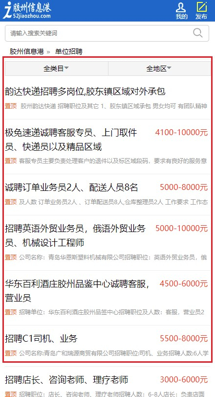 3、例如招聘信息,点击进入,这里提供全类目权地区的单位招聘信息。