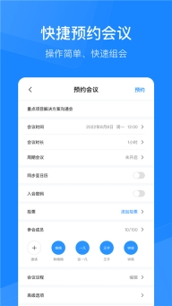 3、若您需要提前预约会议,可点击“预约会议”选项,设置会议时间、会议密码等相关信息;