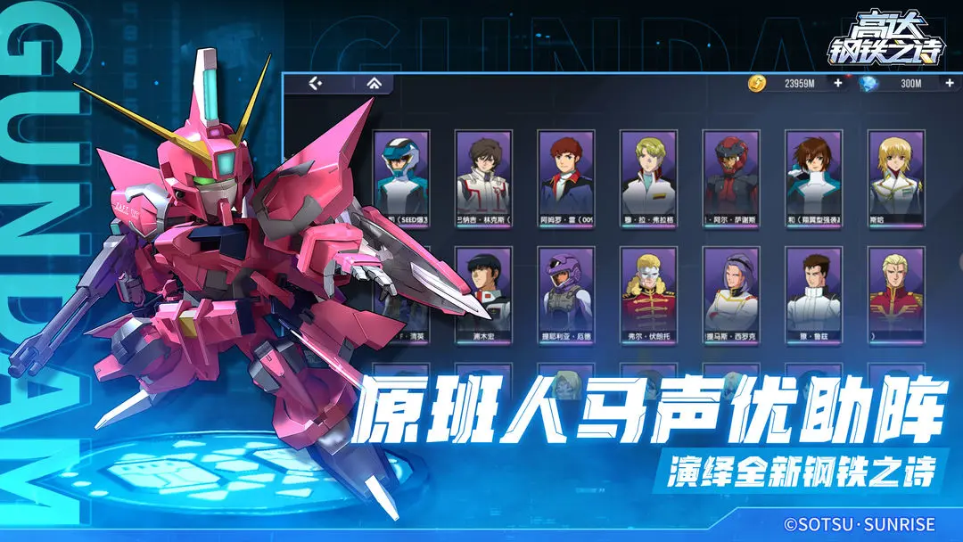 《高达钢铁之诗》收录多部高达故事线,各系列经典名场面还原。特邀原作声优重新制作机体必杀技能喊话配音,古谷彻、池田秀一、宫野真守等顶级声优悉数登场回归!
