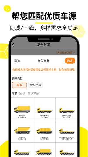 3、平台会依据您的货运重量,为您匹配合适的货运司机。