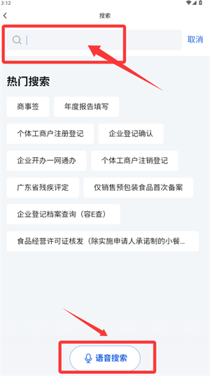 4、查找事项时可输入关键词搜索,或使用语音搜索进行查询。