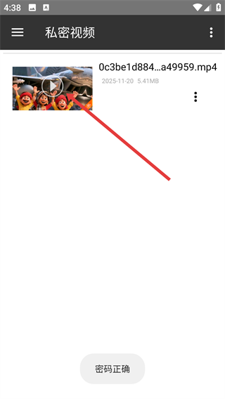 4、进入私密视频页面后,点击视频,即可播放私密视频。