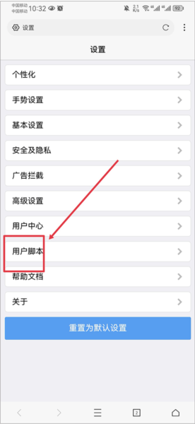 3、进入后设置界面后,点击用户脚本