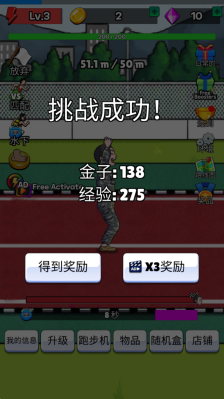 2、每完成指定的目标距离即可获得经验和金币。