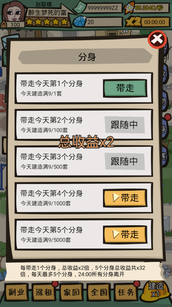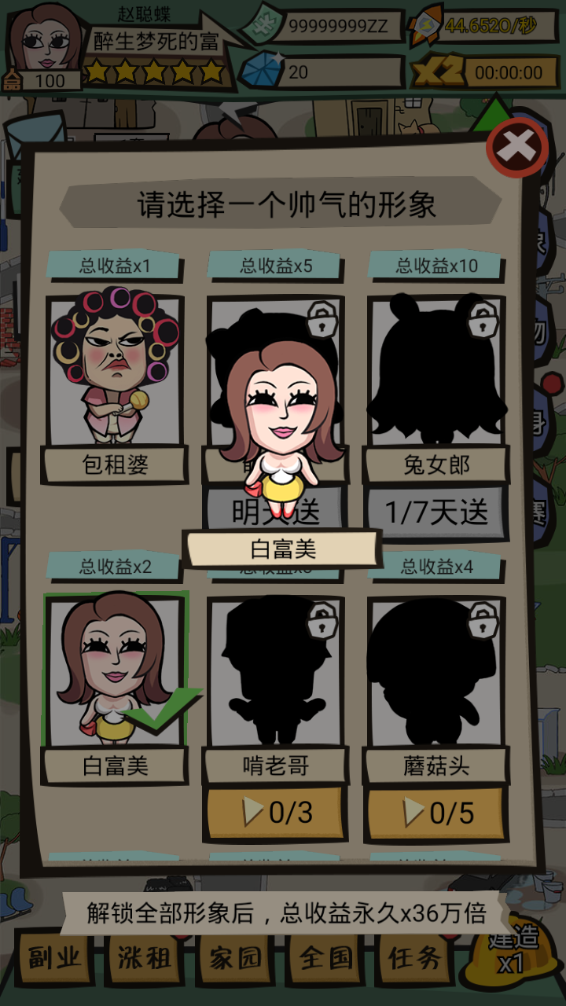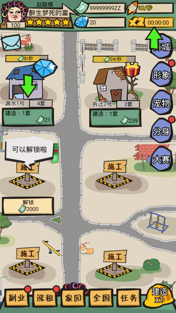 5、另外像形象、宠物、分身等系统的解锁也都增加收益的关键,让我们一起成为包租婆,尽情享受收租炒房开店给你带来的各种乐趣吧。