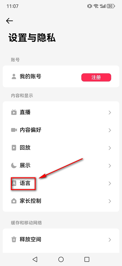 点击【语言】
