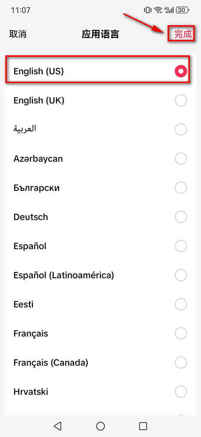 选择一个外国语言后点击【完成】