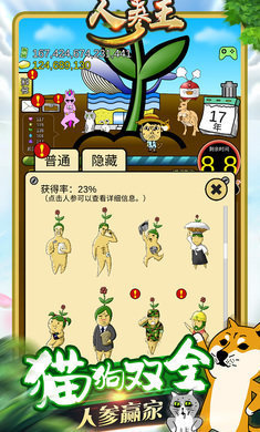 1、魔性可是停不住的种植游戏,各种各样丑萌的山参在你的手上栽种;