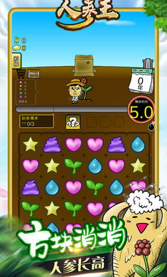 人参王安卓版是一款趣味性很强的休闲益智游戏。该游戏有着十分魔性的画风,在这里,你可以通过简单的消除玩法来获得更多值钱的人参,并将这些人参拿出去换钱,走向人生巅峰。喜欢的朋友还在等什么,快来下载吧!
