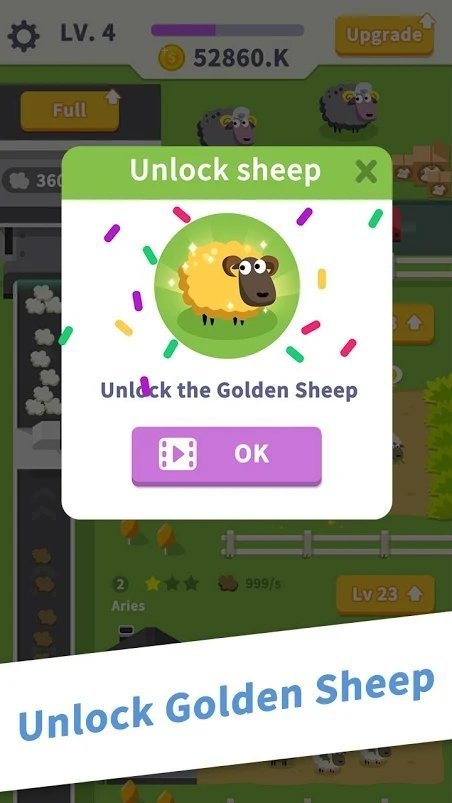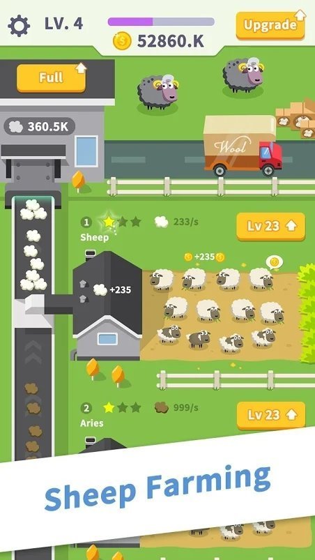2、独特的升级系统,只有升级之后才能解锁更多品种的羊,这样你可以赚更多的钱;