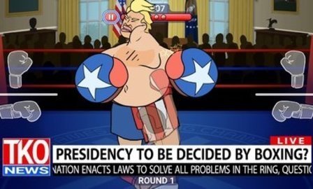 3、在与唐纳德·捶击总统对决之前,先与搞笑的政治对手一路搏斗,入住白宫取得胜利。