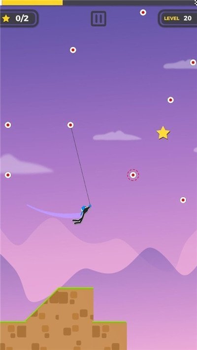 3.让绳索到达目标点定住拉着你的火柴人向前出发,一起挑战这个愉快的摘星星游戏。