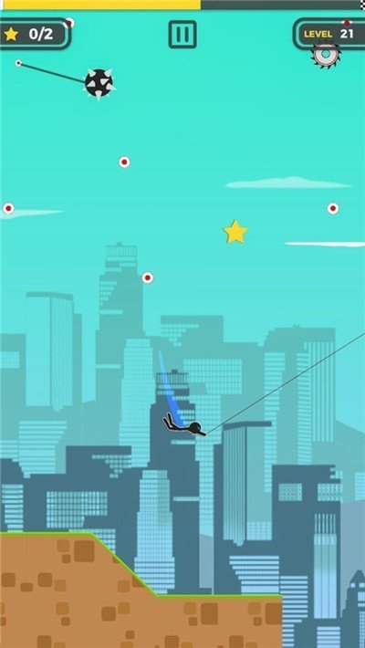 2.越到后面关卡会越来越变得困难,你需要控制你的火柴人精准的点击每一个绳索的目标点;