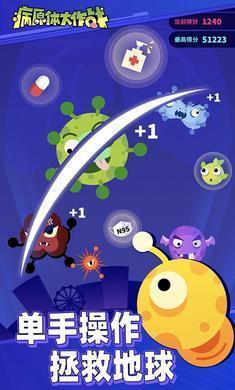 1、竖屏界面滑动手指对战病毒,体验单手拯救地球的快感。