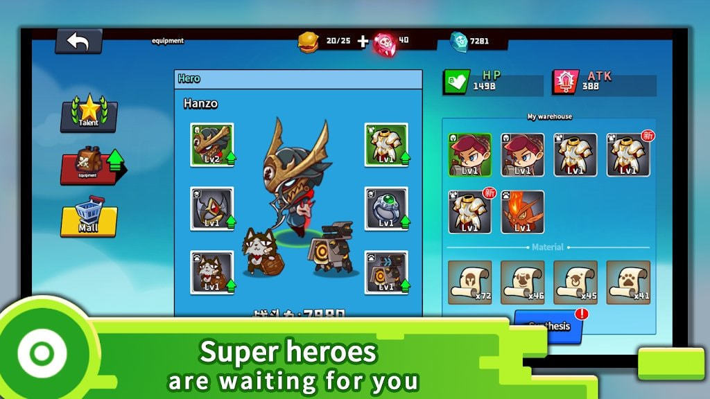 超多的装备种类,使强大的你轻松打败来犯之敌人,打造一个无比强大的英雄