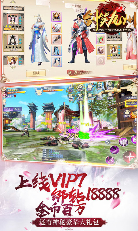 1、登录送VIP7、绑钻*18888、金币*100万、豪华大礼包*1