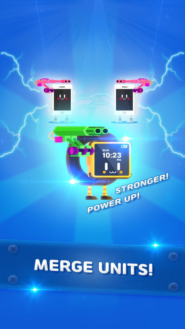 3、将相同数量的电子设备放置到一起,就能合并成强大的电子战士,等级越高属性越强,战力非凡;