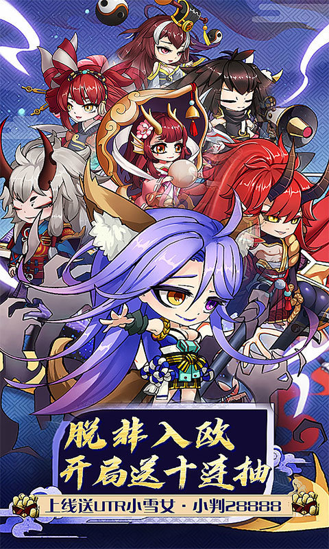1、上线送强力妖怪小雪女!小判28888!开局送10连抽!通关送100连抽!欧皇附身,越抽越爽!