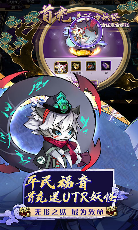 2、首充双倍1:1000!充值比例1:500!首充再送UTR妖怪觉,无形之妖最为致命!