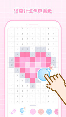 1、更多奇妙的像素格子,非常有少女心的一款填充游戏,发挥你的想象力用任意的颜色来填充;