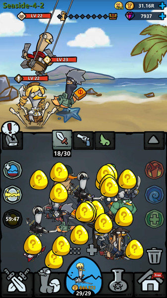 1、简单的合二为一的玩法,让其快速的加入到这场战斗中去,放置挂机不断的成长;